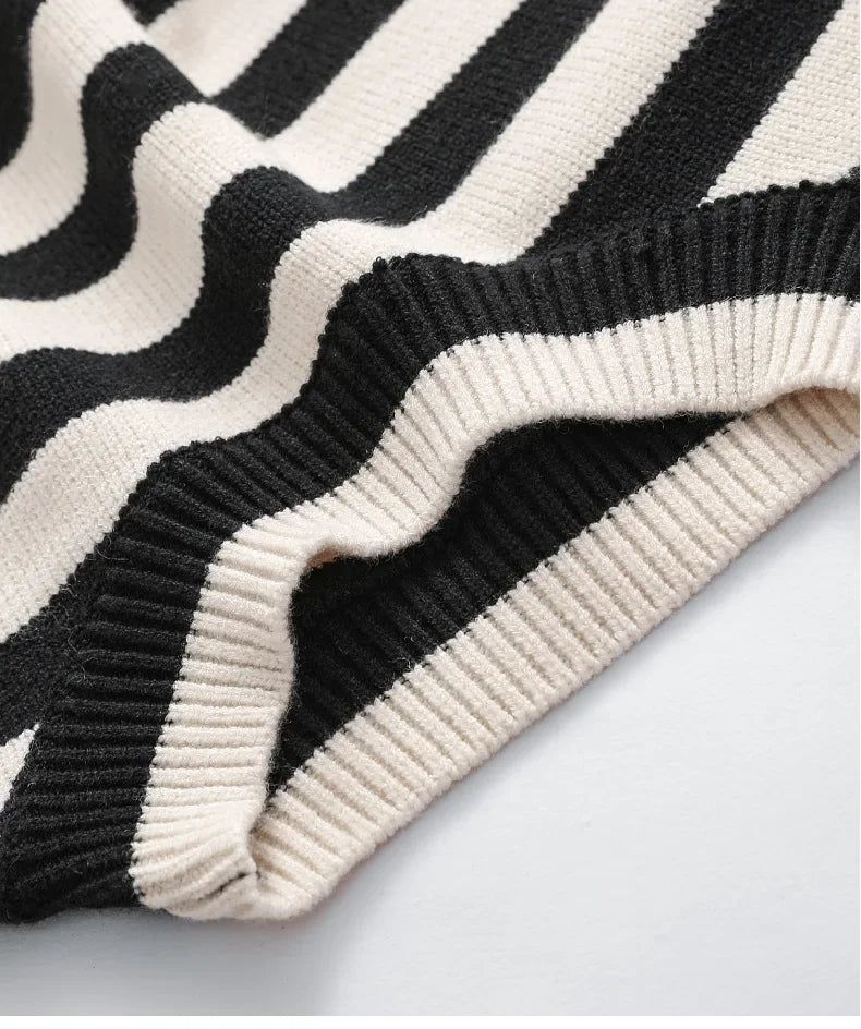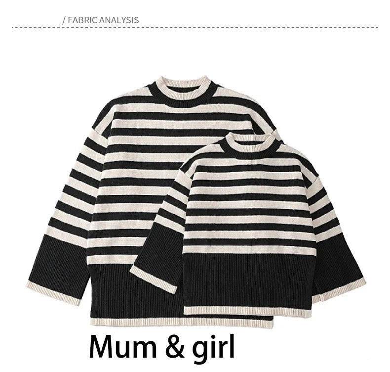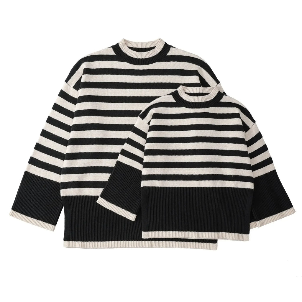 Crafted from premium, soft fabric, these sweaters offer a perfect balance of comfort and style. The black and white stripes add a touch of sophistication, making them versatile enough for any occasion, whether it's a family outing or a cozy day indoors.