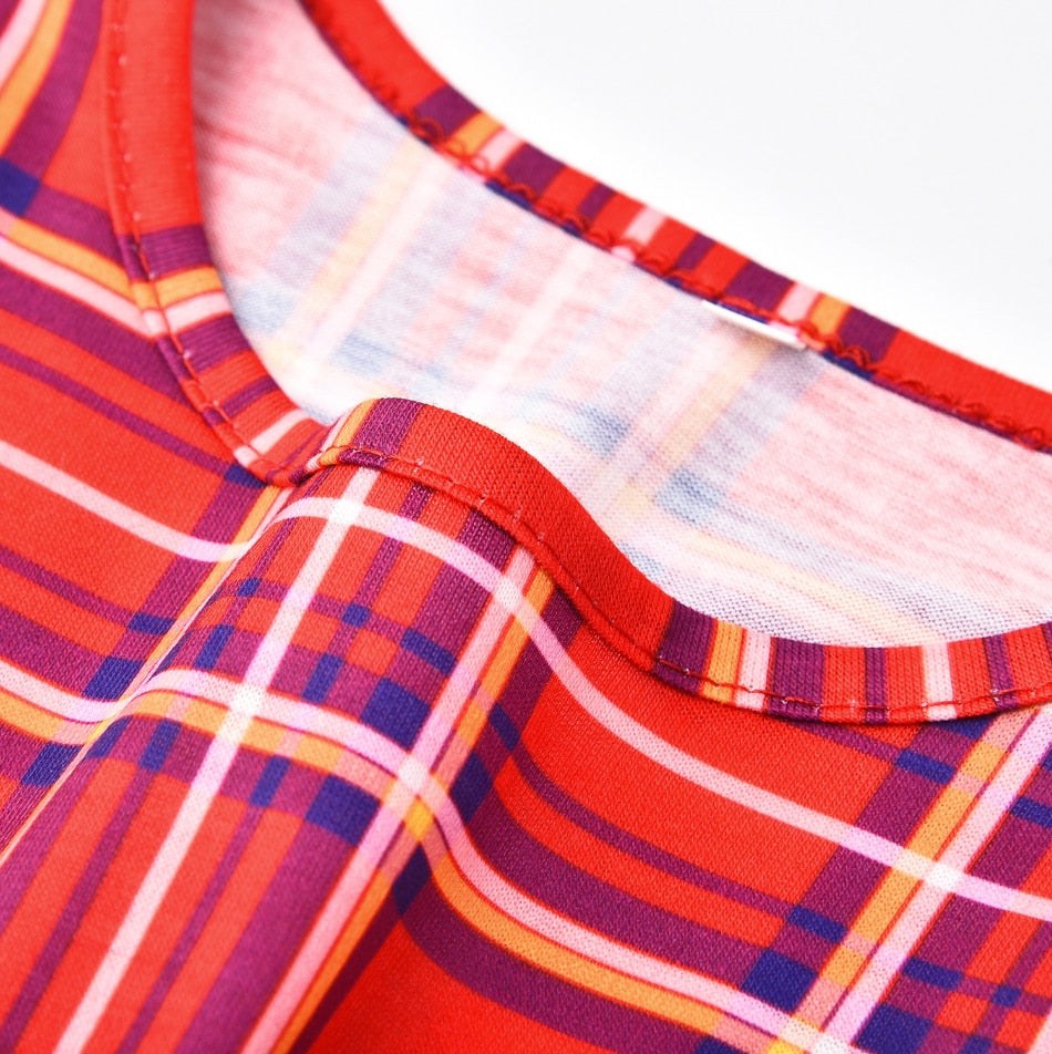 Get ready for the holidays with our red matching holiday dress. Great for any occasion with your little girl, its modest yet chic with light flares at the bottom of the skirt to give it an extra look. Feel extra special this holiday season.